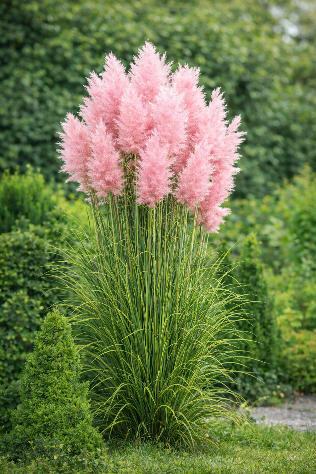 Zapraszam do zakupu trawy pampasowej różowej – jednej z najbardziej efektownych traw ozdobnych, cenionej za okazałe, puszyste kwiatostany w delikatnym różowym odcieniu. To roślina, która nadaje ogrodowi elegancji i nowoczesnego charakteru, doskonale sprawdzając się zarówno w ogrodach przydomowych, jak i w dużych kompozycjach krajobrazowych.